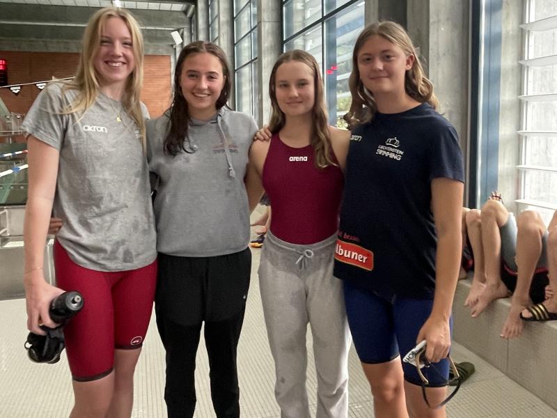 Die fünfte Medaille für die Schwimmgemeinschaft steuerte die 4x50m Freistilstaffel mit Aljimovic, Camijn, Leonie Matheis und Hermine Bloch bei; sie gewannen Bronze hinter den dominierenden Vereinen aus St. Gallen und Kreuzlingen.